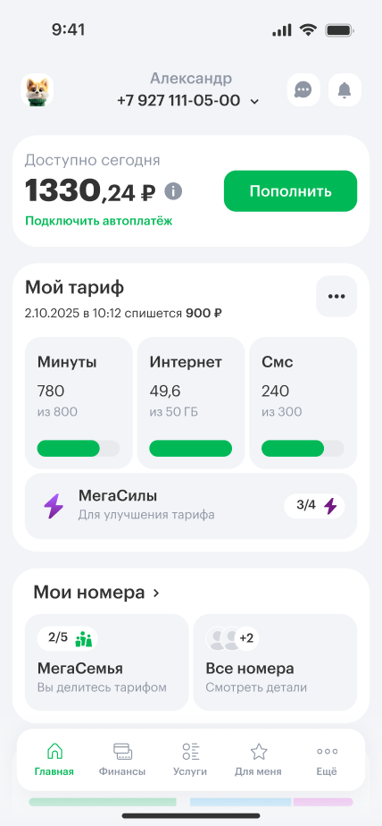 - 1Зайдите в приложение «МегаФон» или в Личный кабинет.